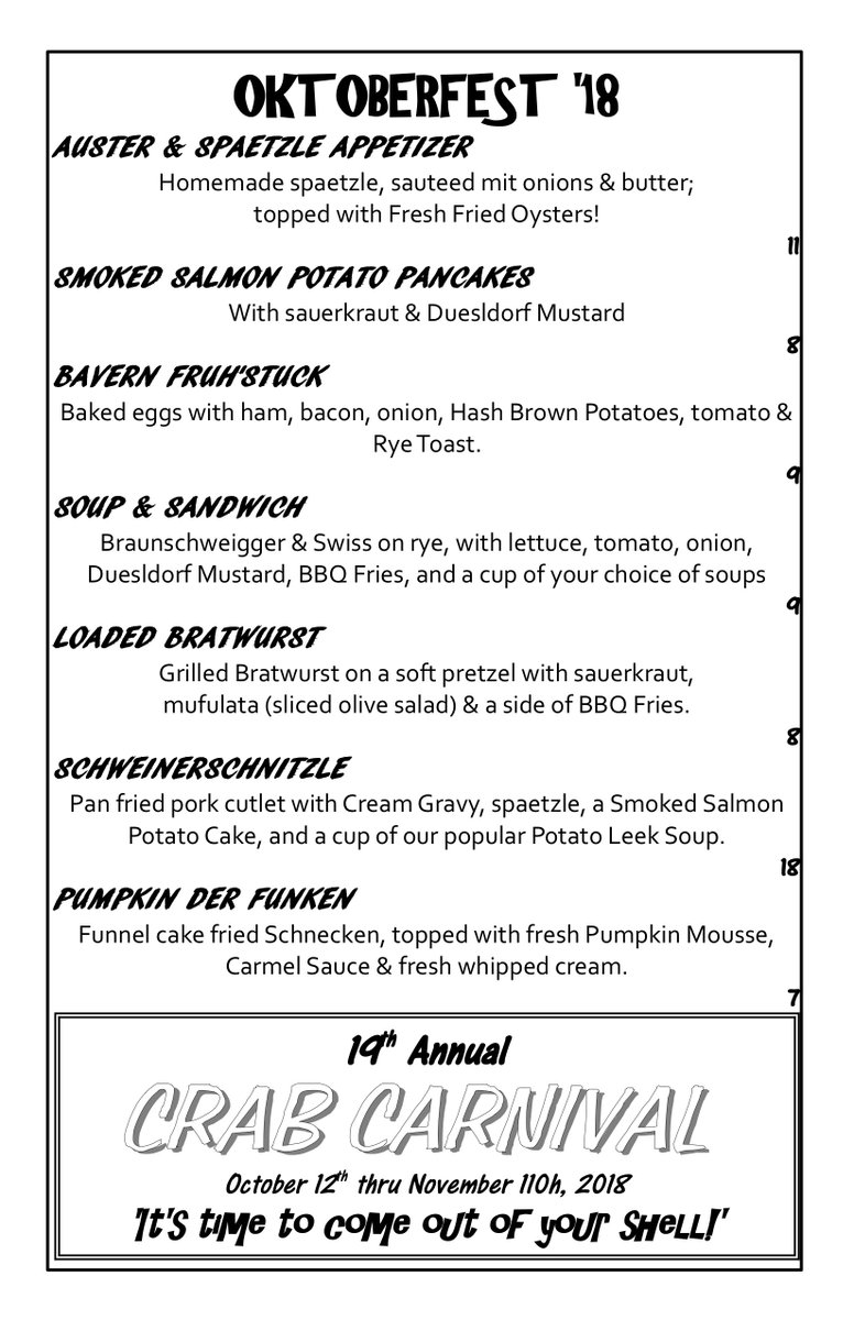 That chill in the air means Oktoberfest is here! #Oktoberfest2018 #oktoberfestmenupic.twitter.com/4oisuW3ccI