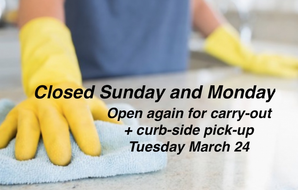 We are closed today for cleaning and sanitizing...open again this Tuesday for more scratch-made deliciousness!