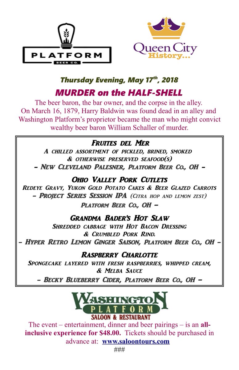 The #menu has been announced for the 2018 season opener of Murder on the Menu. This #truecrime #walkingtour + historically themed dinner take place each month May - November. Can YOU figure out #whodunnit in Cincinnati's oldest #unsolvedmurder? Details: http://queencityhistory.com pic.twitter.com/TQVwLsQsV0