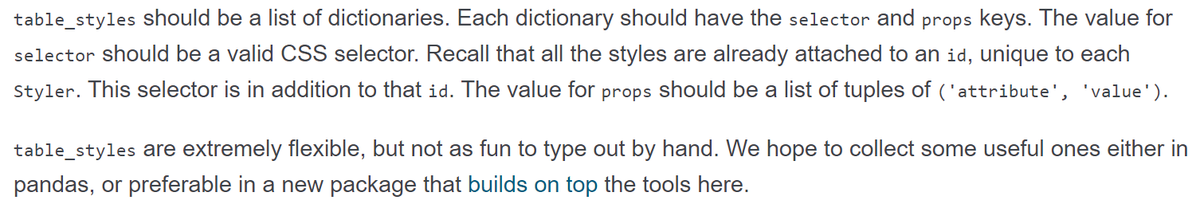 A better interface to the pandas styling API. Kinda like how keras is to tensorflow.https://twitter.com/jeremyphoward/status/1211053239883448321?s=20 …