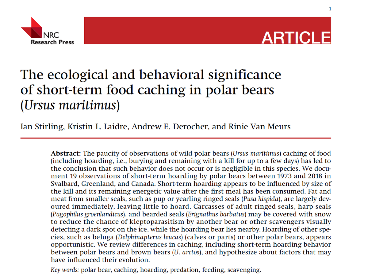 #polarbears. A new study, led by Dr. Ian Stirling, takes the first comprehensive look at this behavior: http://bit.ly/36TDwIb#polarbearresearchpic.twitter.com/Nr1zwr1NfB