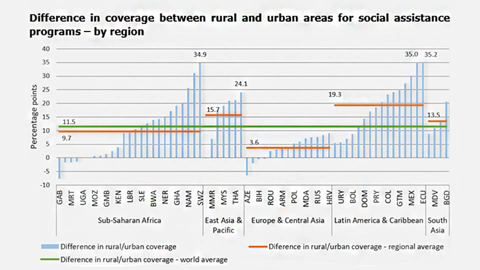 #DYK? The coverage of#SocialAssistance programs in rural areas is 11.5 percentage pts (pp) higher than urban areas. In Latin America & the Caribbean the difference is 19.3pp, in East Asia & Pacific it's 15.7pp, while Europe & Central Asia is only 3.6pp. http://wrld.bg/UFiv50IiHEq pic.twitter.com/aUQHFVGYm7