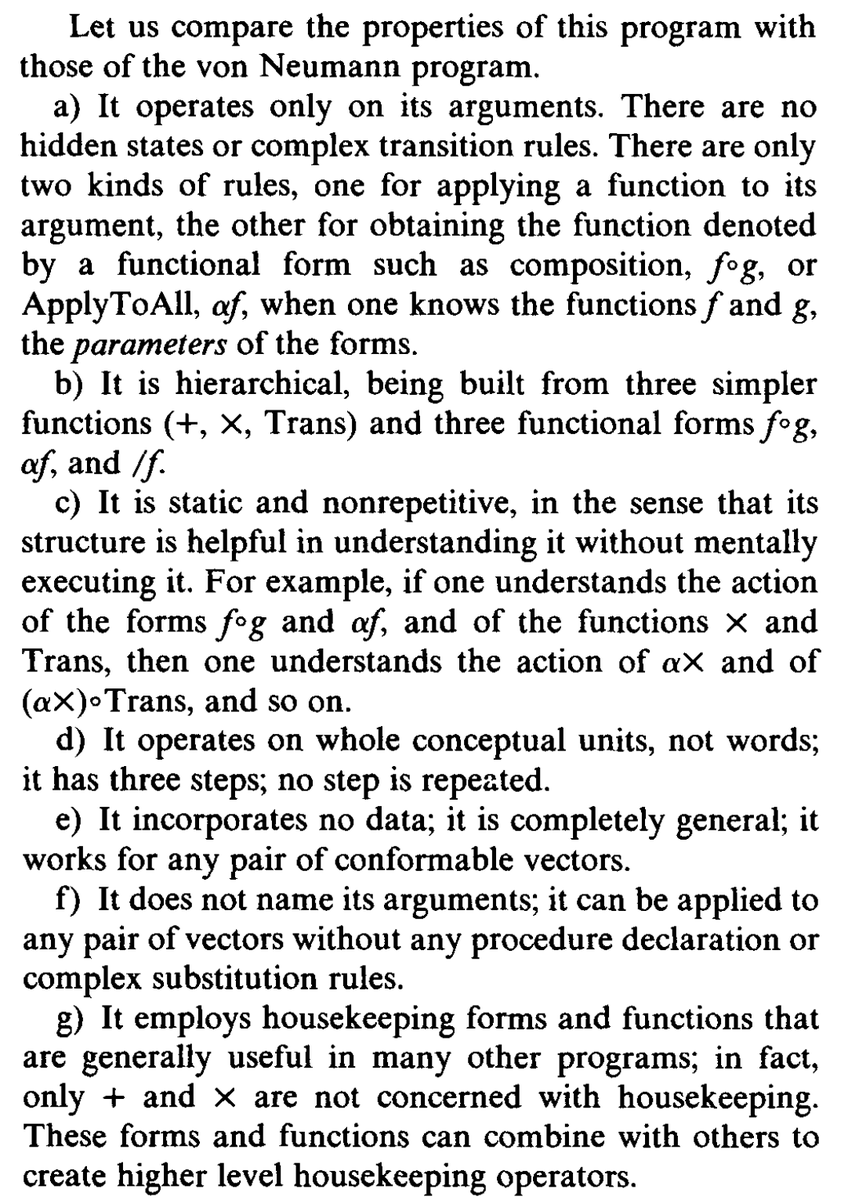 I think Backus' comparison provides reasonable arguments for the functional version that don't appeal to aesthetic. He argues about nameless-ness, compositionality, generality.pic.twitter.com/b2tpuYT4SZ