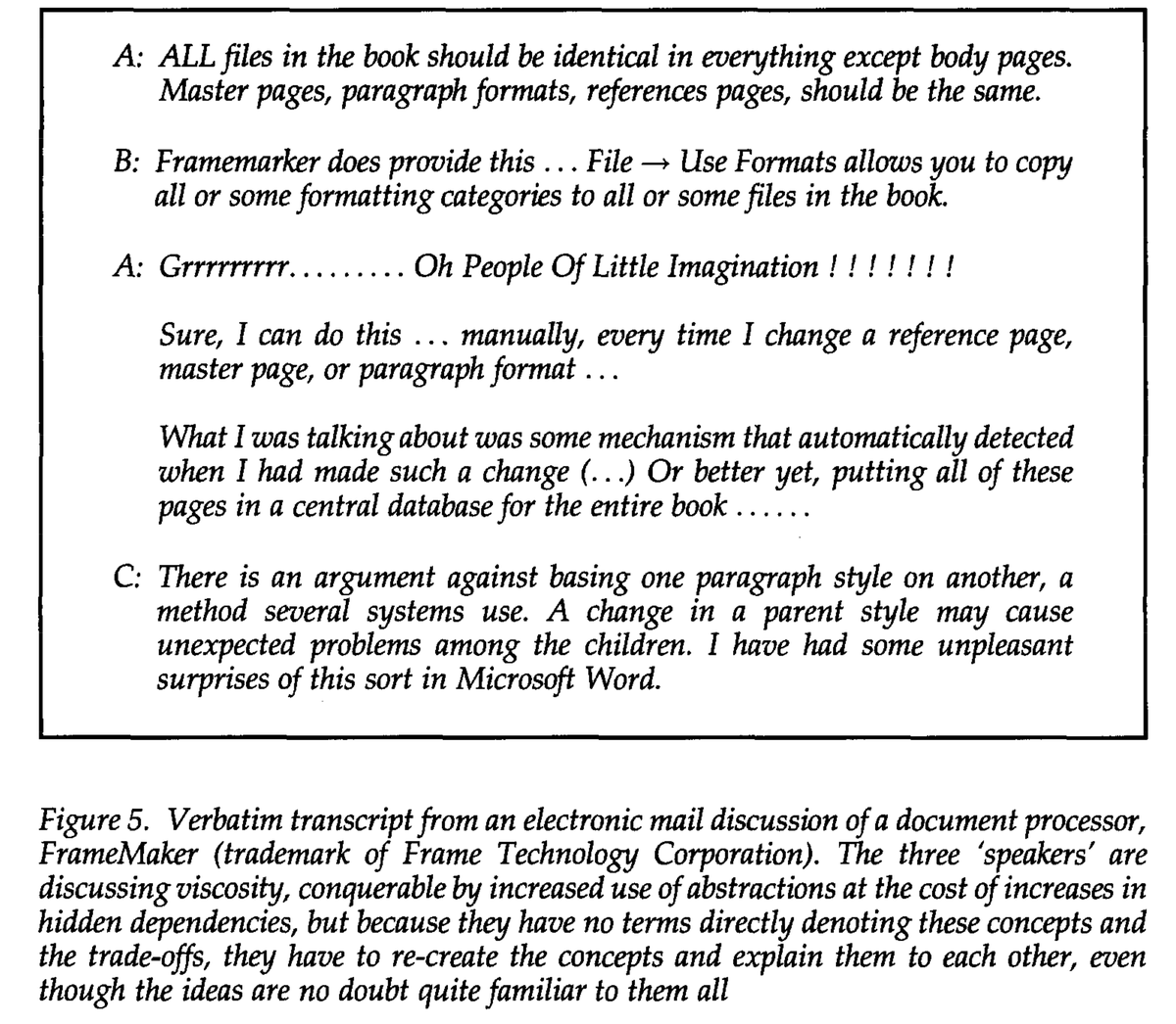 Green also talks explicitly about this in "Delivering cognitive psychology to HCI: the problems of common knowledge and language transfer". Also some cool examples in that paper of using formalism to precisely compare abstractions of users' mental models.https://twitter.com/wcrichton/status/1292882250200051712 …