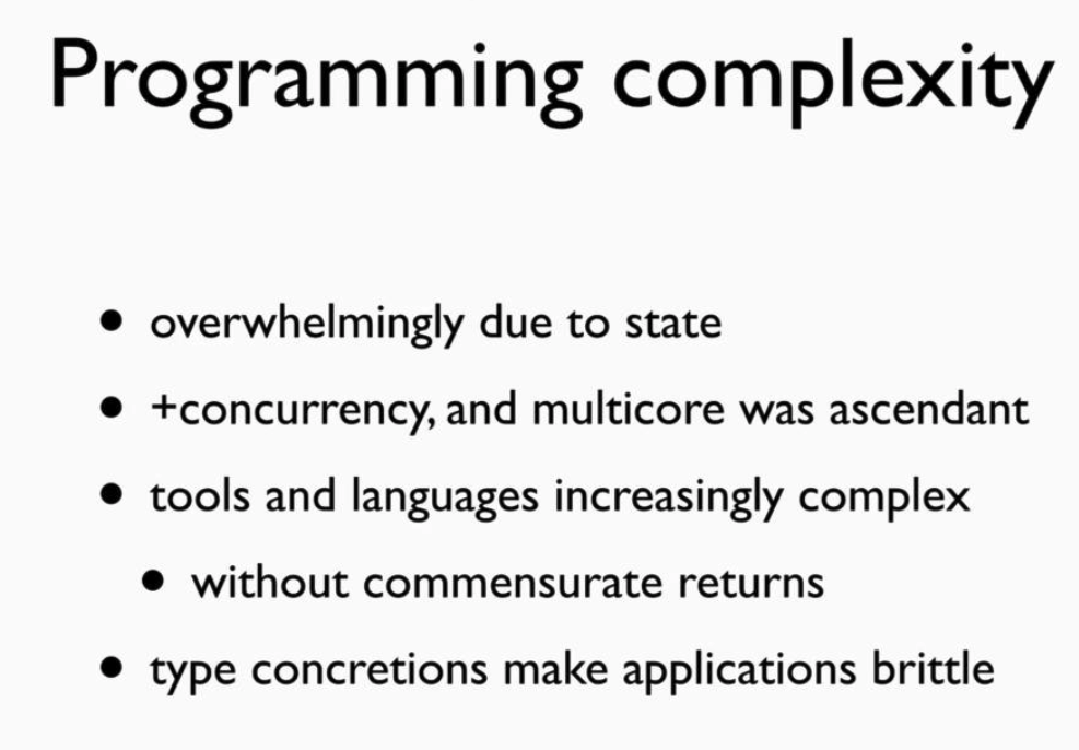 Hickey on the motivations for Clojure: what makes programming complex?pic.twitter.com/8IgOuevdee