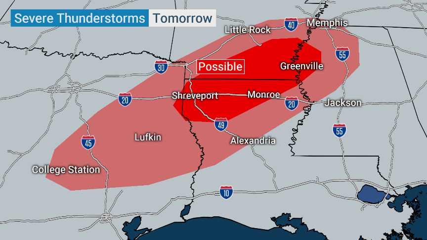 Severe thunderstorms, including a couple of strong tornadoes and destructive hail, are expected this afternoon in the Southern Plains.