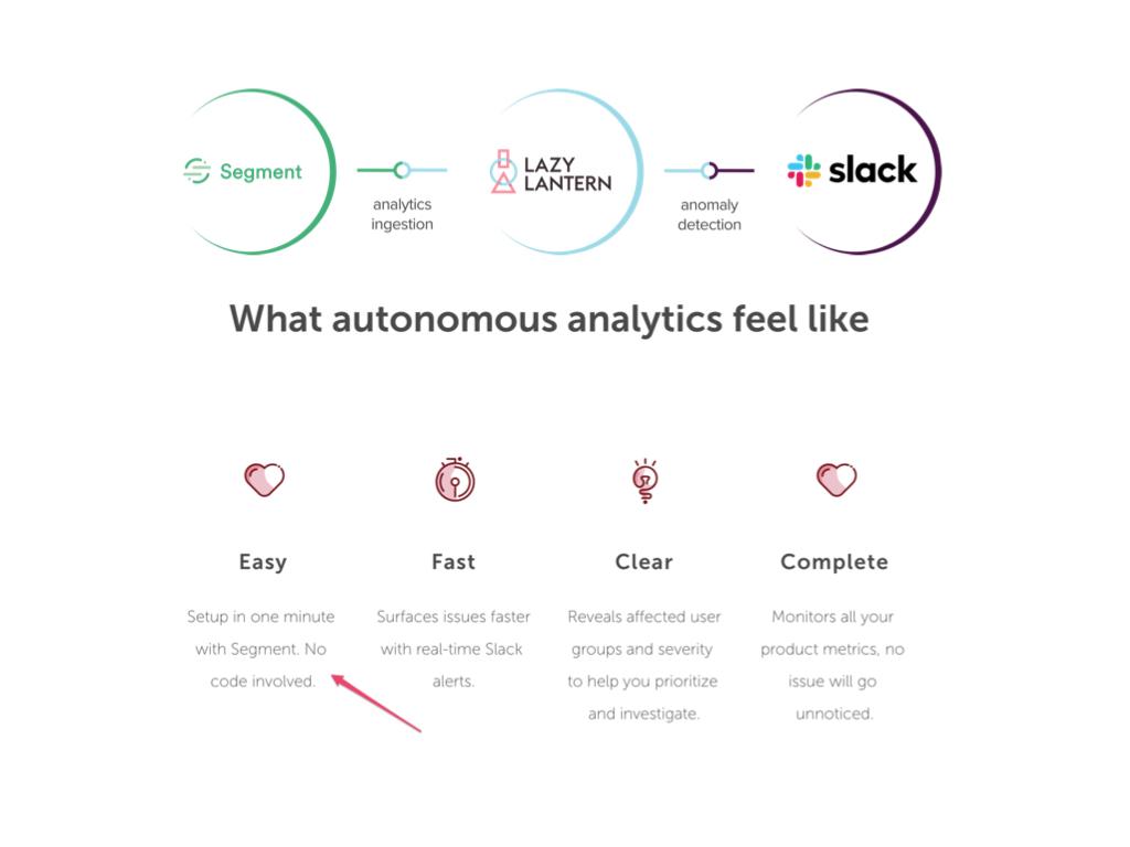 @vas on how this is a product purely built on top of two platforms - Segment (customer acquisition) and Slack (since their MVP is a Slackbot - adoption/retention). Two years ago this wouldn't have been possible