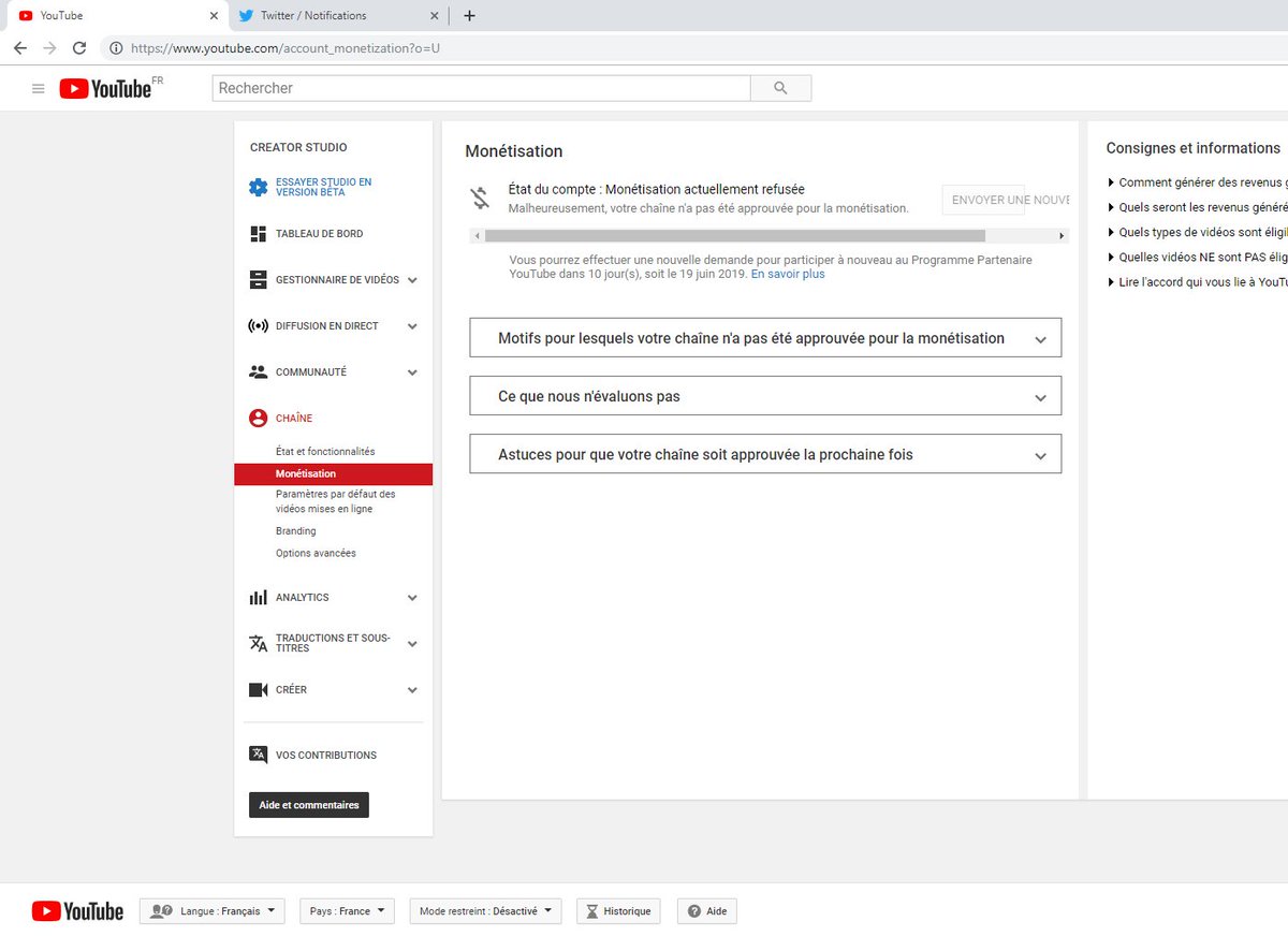 Voila la capture écran, d’ailleurs le motif change a chaque fois, et dans ce cas la je ne comprend pas pourquoi, car toutes mes vidéos sont faites avec des jeux vidéos que j'enregistre moi même. Dans l'attente de votre réponse. cordialementpic.twitter.com/vWi3nPGtui