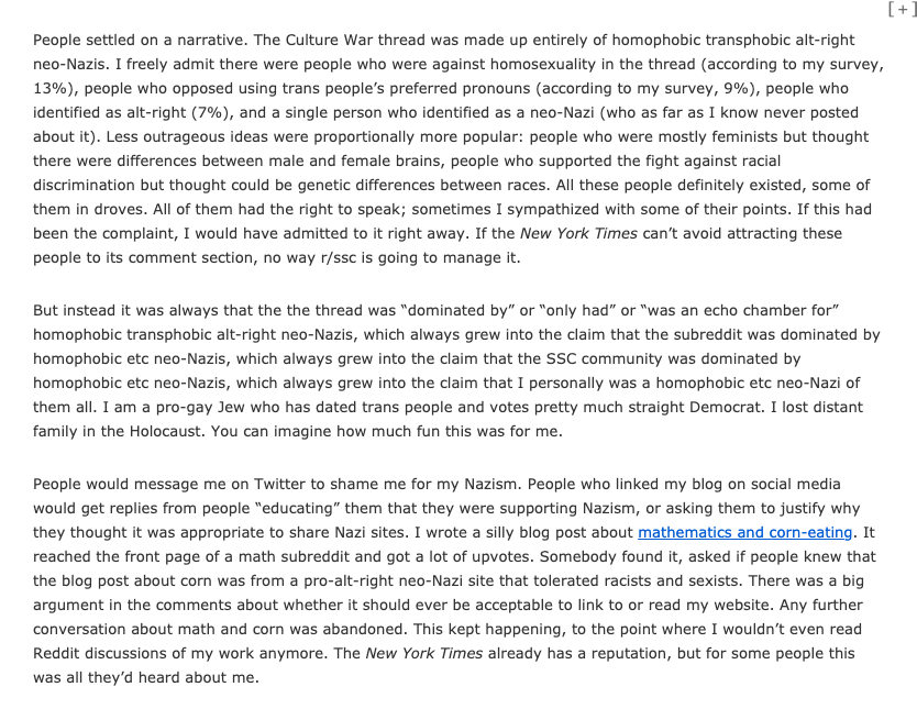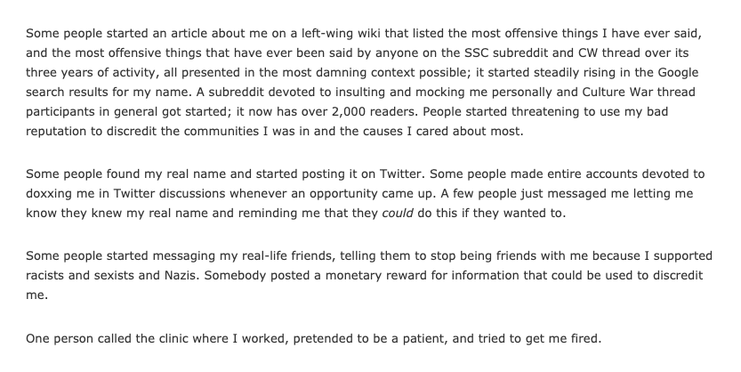 By the time Scott at Slate Star Codex was harassed into a genuine nervous breakdown, it was clear to me that anyone willing to have these conversations is just as much the enemy as the IDW-identified. Show me anyone with skin in the game on the New Left who said "enough."pic.twitter.com/4ca1dCVfe1