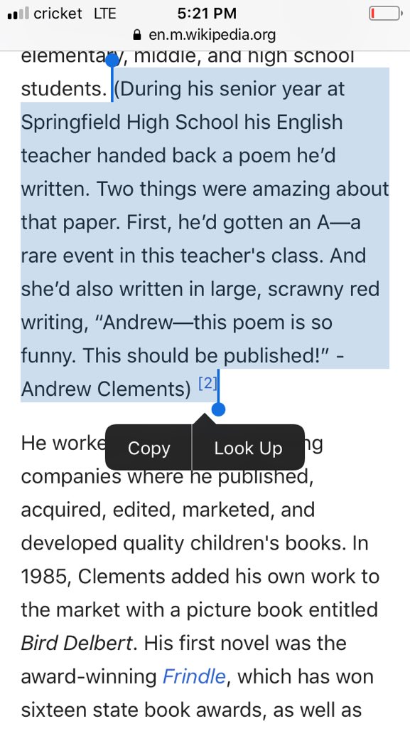 Your tweet reminded me of a couple children’s books I hadn’t thought about in years: “Frindle” and “The Landry News” by Andrew Clements, and perhaps unsurprisingly, his Wiki includes an anecdote about a teacher who performed that role for him.pic.twitter.com/IiUsEBaRYD