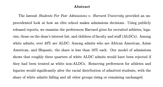 The product of elite universities is credentialing for academically-passable elite kids, mostly white. Status/product quality is maintained by admitting a tiny set of extremely interesting + productive young people. The brand is protected by admitting the rest via diversity quotahttps://twitter.com/paulg/status/1174968271432384512 …