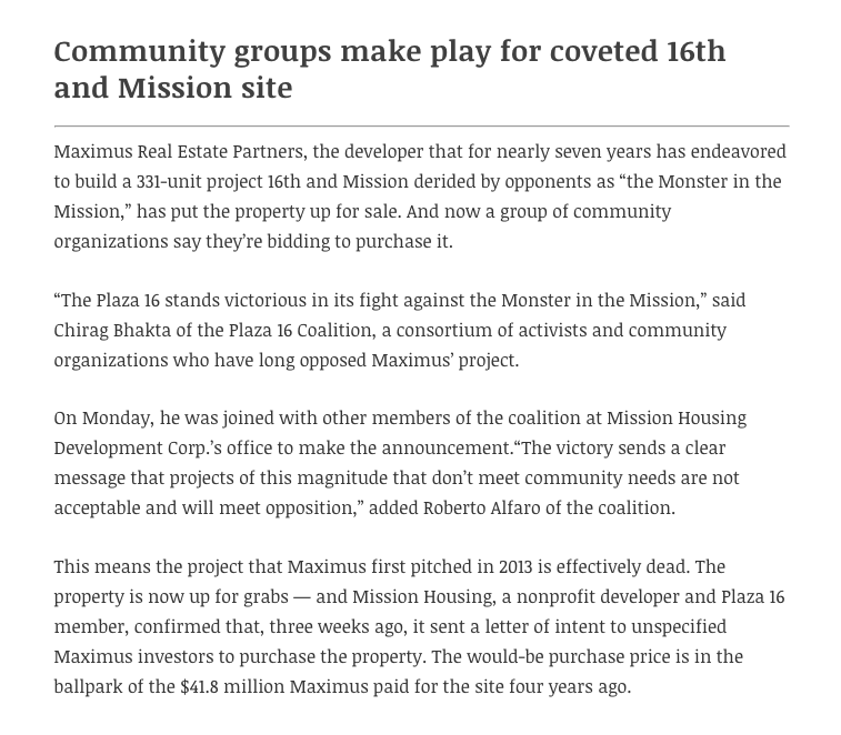 After a 7-year battle to build 331 new homes right by public transit, another SF housing project killed. But hey! The "community organizations" who murdered it — and could do it again, to any prospective buyers — are... going to bid on the land themselvespic.twitter.com/OD05kTRvRH