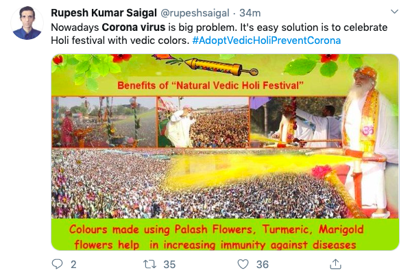Atleast they're not proposing their favourite panacea... Oh wait. "Swami Chakrapani Maharaj, president of Hindu Mahasabha, on Friday said cow urine and cow dung can be used for treating novel coronavirus disease."https://www.news18.com/news/india/from-cow-dung-to-urine-hindu-mahasabha-suggests-bizarre-treatment-for-coronavirus-2483153.html …