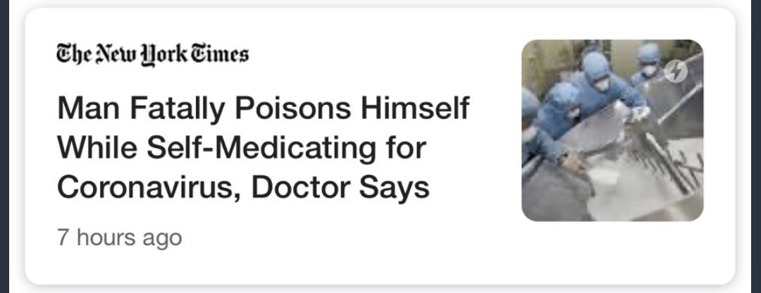 I don't know if chloroquine will turn out to be part of an empirically validated protocol for COVID-19, but I do know that it's irresponsible to write headlines implying people are dying from the medication when they actually ODed on a product for treating fish tankshttps://twitter.com/NBCNews/status/1242212084647104514 …