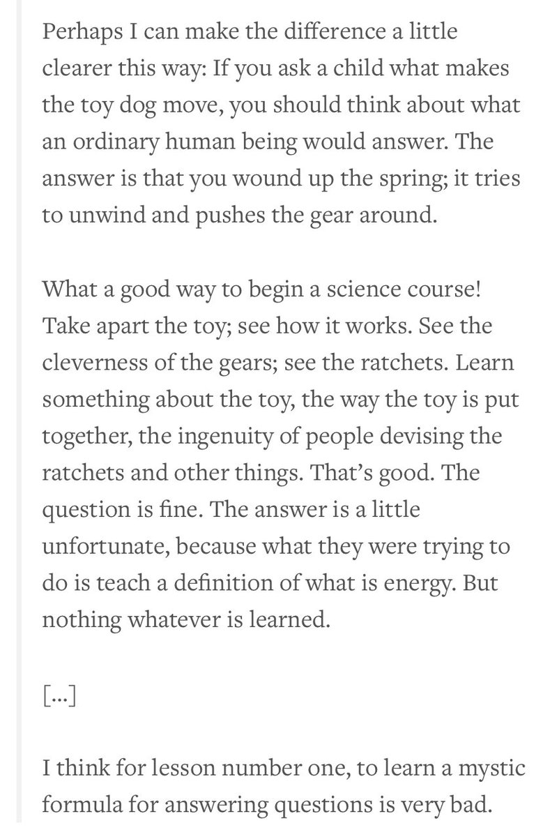 “The answer is a little unfortunate, because what they were trying to do is teach a definition of what is energy. But nothing whatever is learned.” The understanding of *definition* of a a word works on the realm of communication btw people as well as the *borders* of a concept