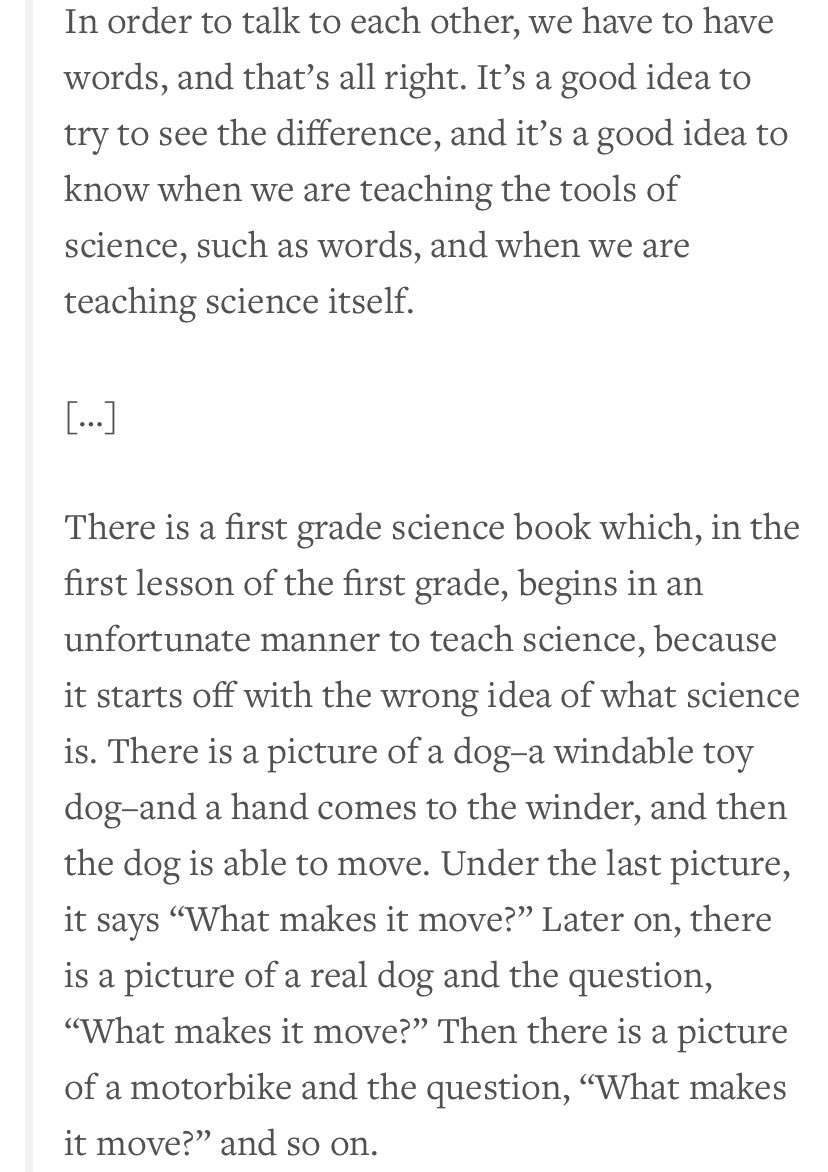Mentioned Feynman re correlation btw screen cap/quote. I do think he’s being a bit tongue&cheek, but also learning vague definitions is setting up buckets/organizing structure to contain knowledge “Knowing the names of things is useful if you want to talk to somebody else.”