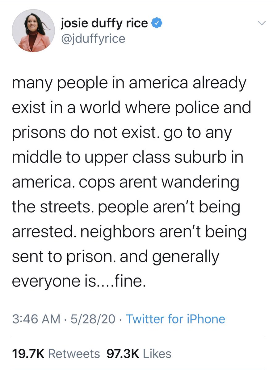 people extrapolating from their bubble of safety is probably one reason why there is traction for the idea of abolishing police.