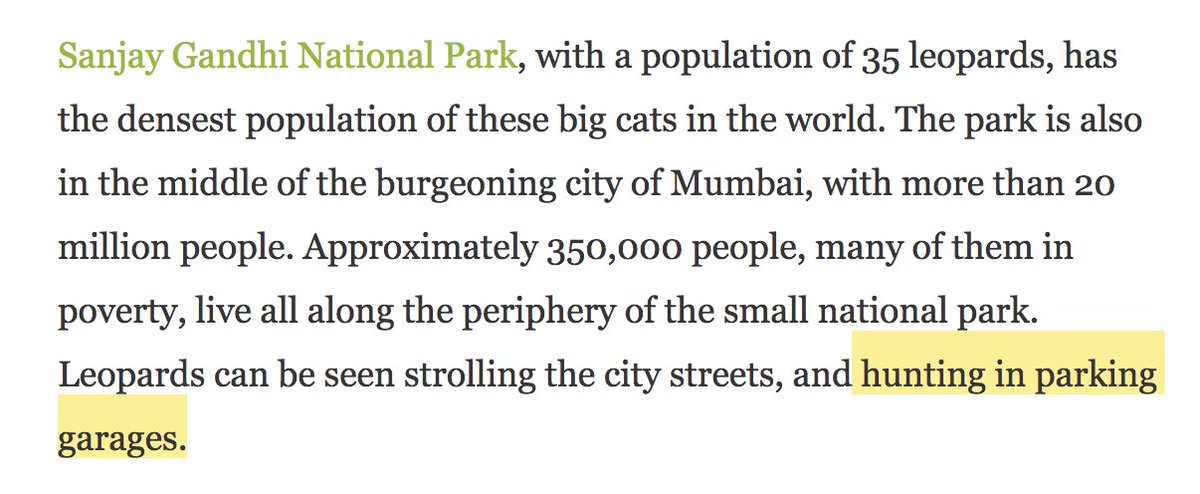 Should be noted that "the leopards hunt in the parking garages" is basically a footnote; the larger point being that leopards feasting on feral dogs is plausibly cutting down on the horrifying local rabies rates Surely this is what "between a rock & a hard place" was coined for