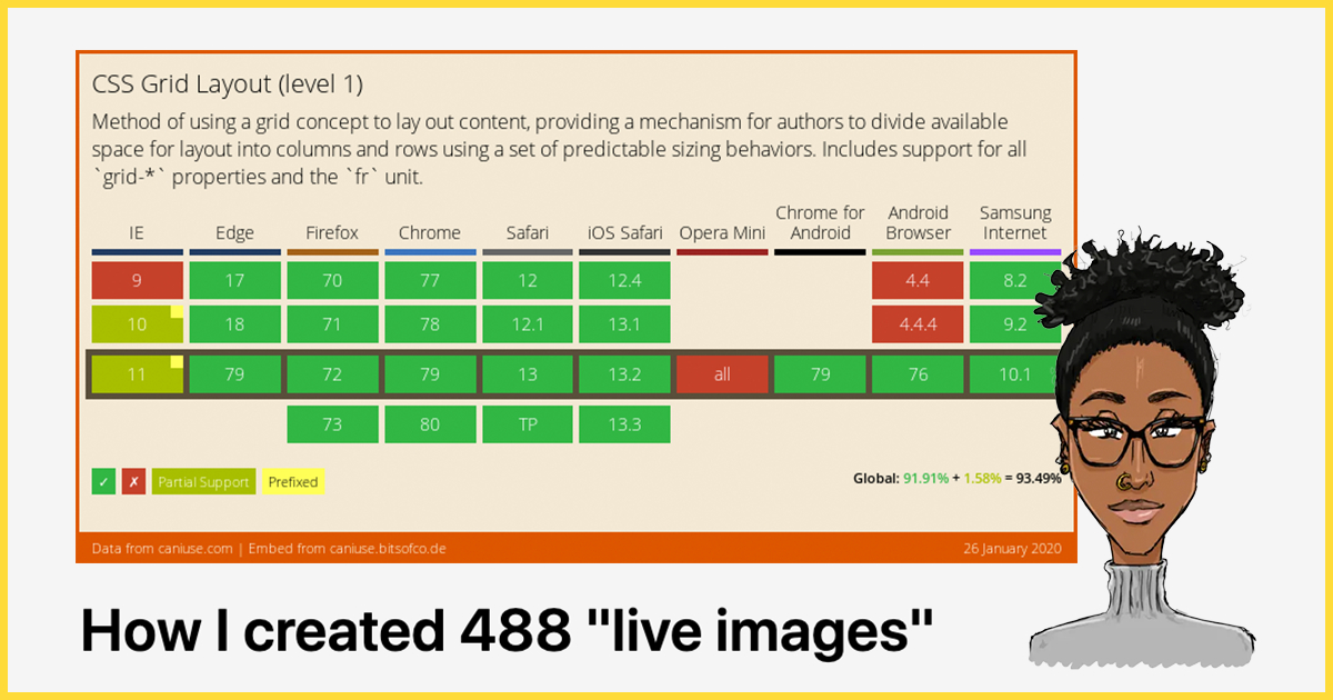 Как я сделала 488 «живых изображений». Ире Адеринокун показывает, как она автоматизировала обновление скриншотов с Can I use… с помощью Puppeteer для удобного встраивания таблиц поддержки — https://bitsofco.de/how-i-created-488-live-images/ …pic.twitter.com/eorSzfadv6