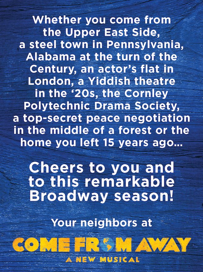 Whether you come from Russia, the Bronx, or a magical chocolate factory, cheers to all our friends on Broadway for a remarkable season!