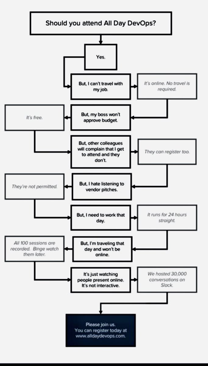 @AllDayDevOps on Nov 6th. Register, then reserve your conference room today. http://www.alldaydevops.com/register . cc:@CarolineWMWongpic.twitter.com/oc1Fvt0Kmw