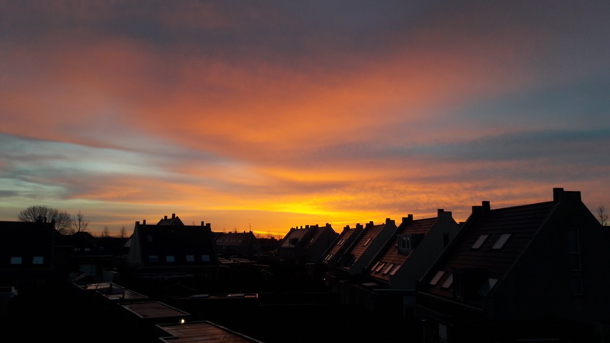 Een fraaie zonsopkomst op dit moment in Houten (nabij Utrecht). Vandaag zon, maar ook enkele pittige buien met kans op onweer, windstoten en hagel. Het wordt 11 graden op de Wadden tot lokaal 17 in het zuidoosten. Meer weer: https://www.weeronline.nl/weerbericht-nederland …pic.twitter.com/fcZZbHqOuU