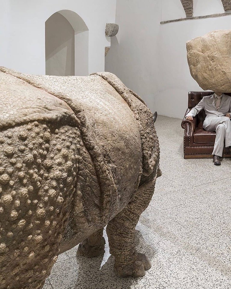 Sun Yuan & Peng Yu @galleriacontinua Teenager Teenager (fiberglass/sofa/mixed media) life-size 2011 I Didn’t Notice What I am Doing (painted fiberglass) Triceratops: 400 x 190 x 120 cm. | Rhinoceros: 300 x 160 x 120 cm. 2012 Photo: Ela Bialkowskapic.twitter.com/ZsrwiVm90e