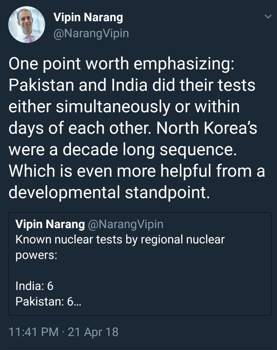 I love how I manage to unite the Indian and Pakistani nuclear communities against me. A true feat if I may say so myself. 1974 was not a “weapon” for very clearly technical reasons.https://twitter.com/mosharrafzaidi/status/987766947285741569 …
