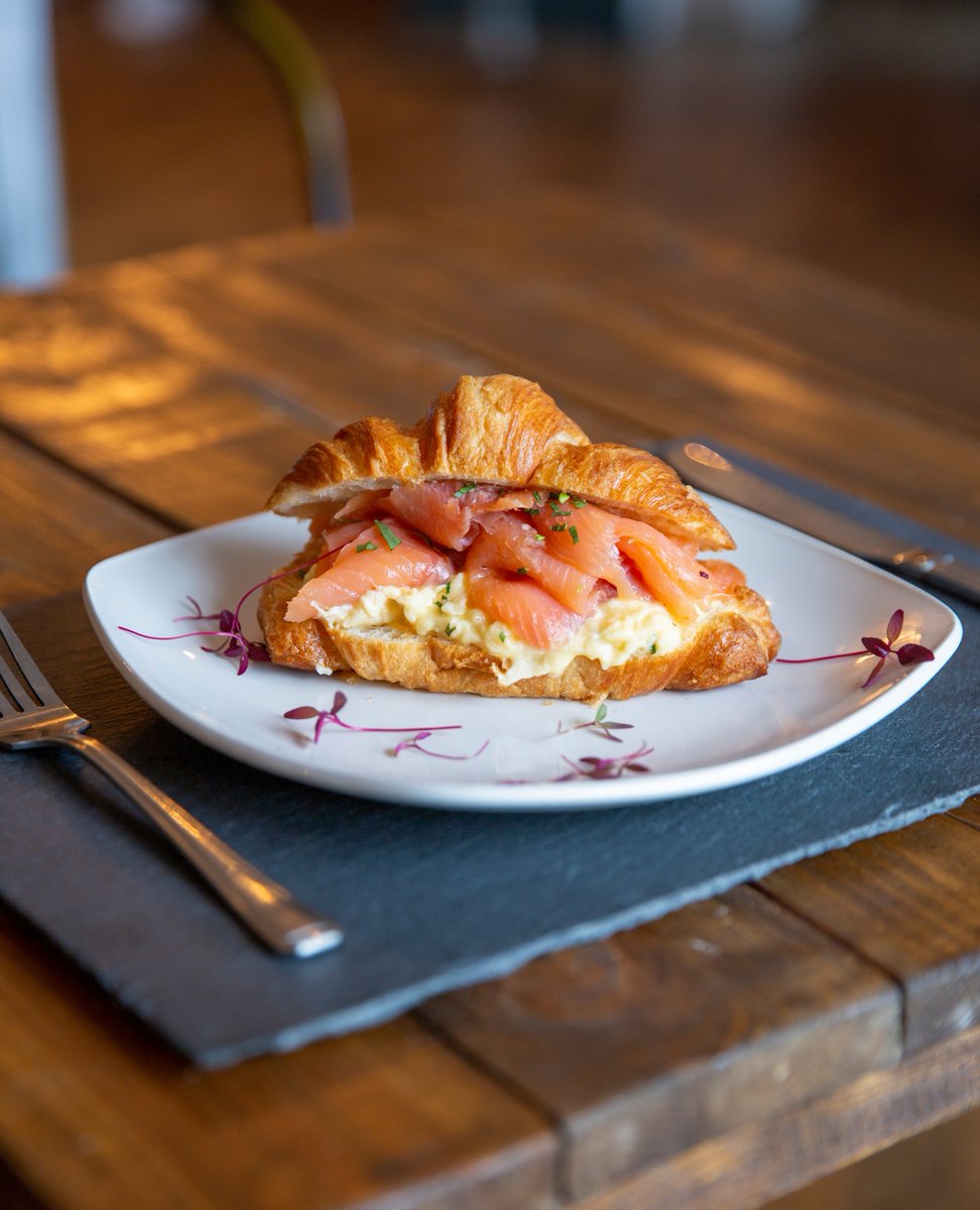 Morning all! Start your Thursday perfectly with a freshly baked croissant with herby scrambled eggs, smoked salmon