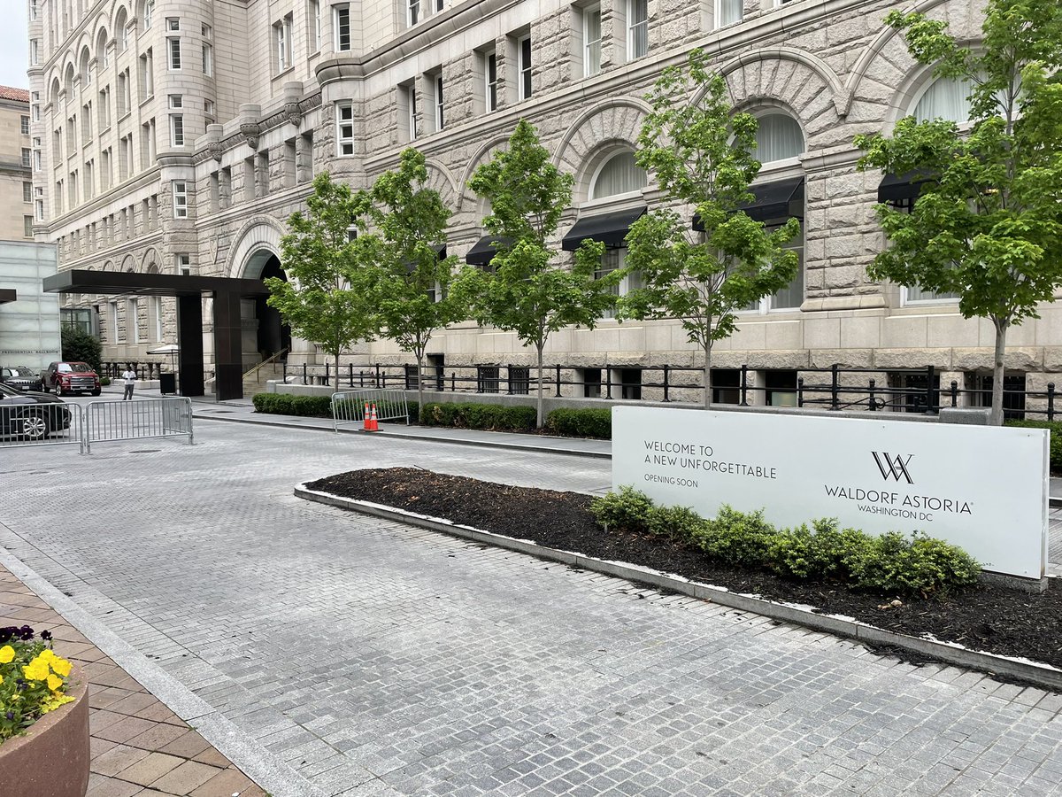 Kein Trump mehr an Washingtons Pennsylvania Avenue: Das (Ex-)Trump-Hotel heute (links) und Ende April (rechts).
