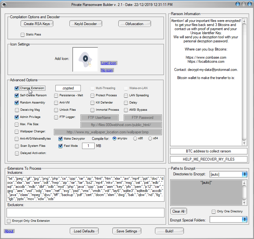 Private Ransomware Builder v. 2.1 - Date 22/12/2019 .. Ransomware, Ransomware Everywhere!! .. Here we go again!!