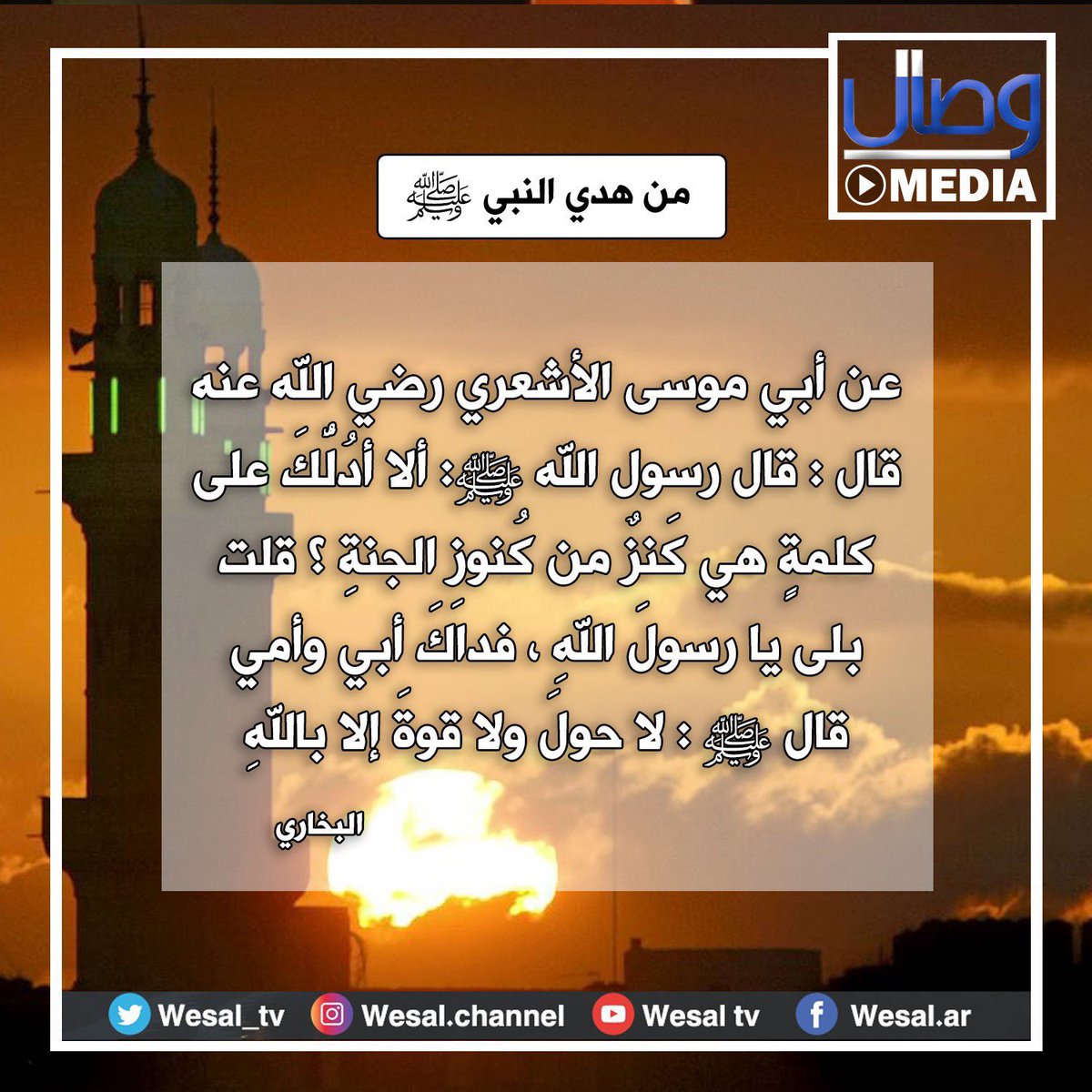 عن أبي موسى الأشعري رضي الله عنه قال : قال رسول الله ﷺ : ألا أدُلُّكَ على كلمةٍ هي كَنزٌ من كُنوزِ الجنةِ ؟ قلت بلى يا رسولَ اللهِ ، فداكَ أبي وأمي قال ﷺ: لا حولَ ولا قوةَ إلا باللهِ