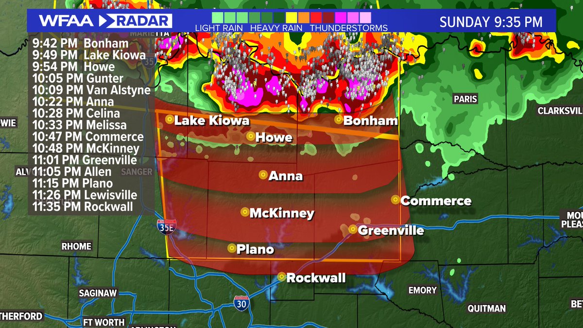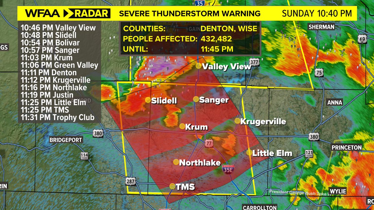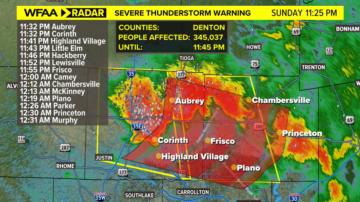 Severe Thunderstorm Warning for Collin and Denton counties until 12:15 a.m. The main concern with this storm is hail up to the size of quarters. The wind risk is not a concern. More: https://www.wfaa.com/article/weather/buckle-up-our-first-100-day-is-in-the-forecast/287-986f60bb-ff9a-4fb2-b0b6-46fb81a12179 …pic.twitter.com/gzKx7h7QVq