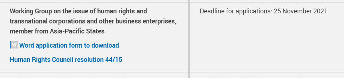 @WGBizHRs member position. Deadline is 25 Nov 2021. Appointment will be made in March 2022. Apply here: https://www.ohchr.org/EN/HRBodies/HRC/SP/Pages/HRC49.aspx … Get in touch if you want to know anything about the process or work!#bizhumanrightspic.twitter.com/poV4Gvf8hq