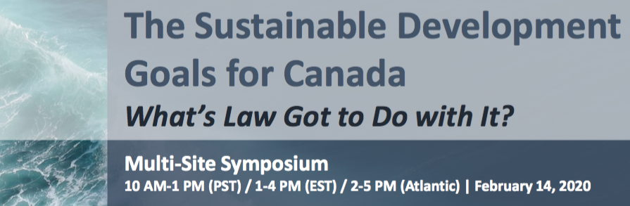 @intsustainlaw is hosting a conference on Feb 14 on the SDGs in Canadian Law and Policy. "The Sustainable Development Goals for Canada: What's Law Got to Do with It" will be in Montreal, Toronto/Waterloo, Halifax and Vancouver, and online! Get tickets: https://bit.ly/36dQ4sW pic.twitter.com/dSiKH9nJFw