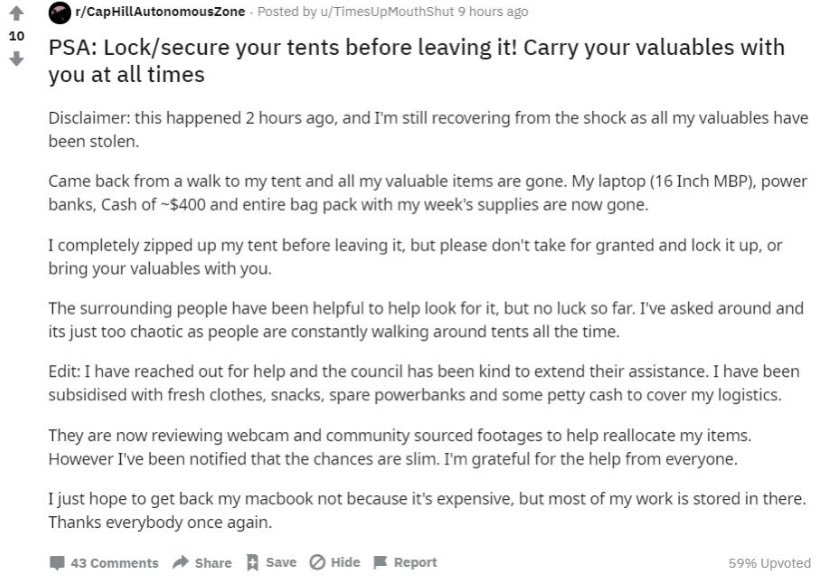 What he thinks is happening is that transient people are moving into the area and establishing these tent cities/neighborhoods.