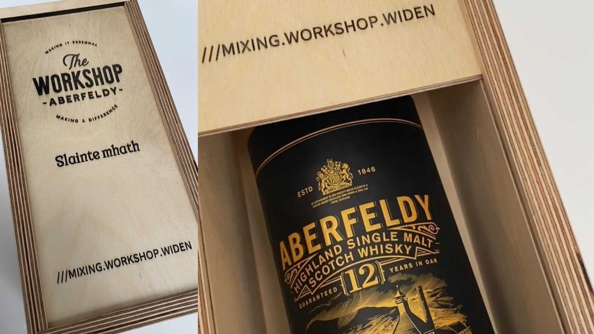 @WkshopAberfeldy is a #SocialEnterprise offering free training in woodworking and manufacturing, and as well as creating what3words signs they've crafted a Whisky case engraved with the workshop's what3words address