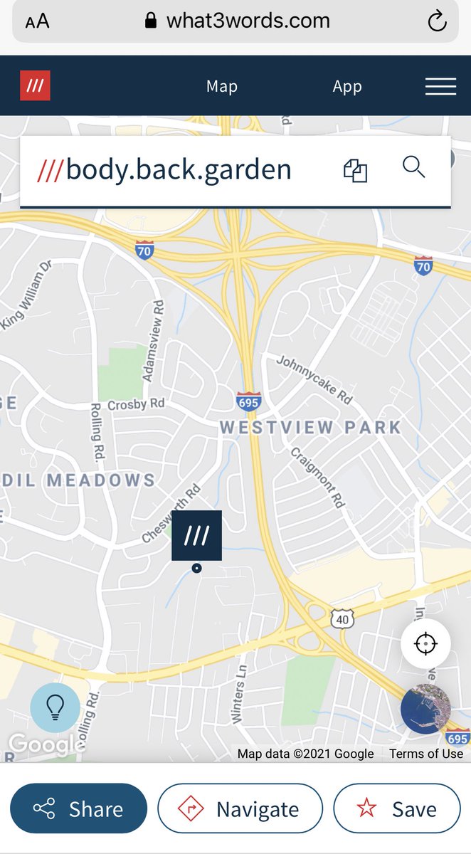 Thought I’d try @what3words. Next time there’s a murder in Baltimore, I suggest looking herepic.twitter.com/ryFVjqynSg