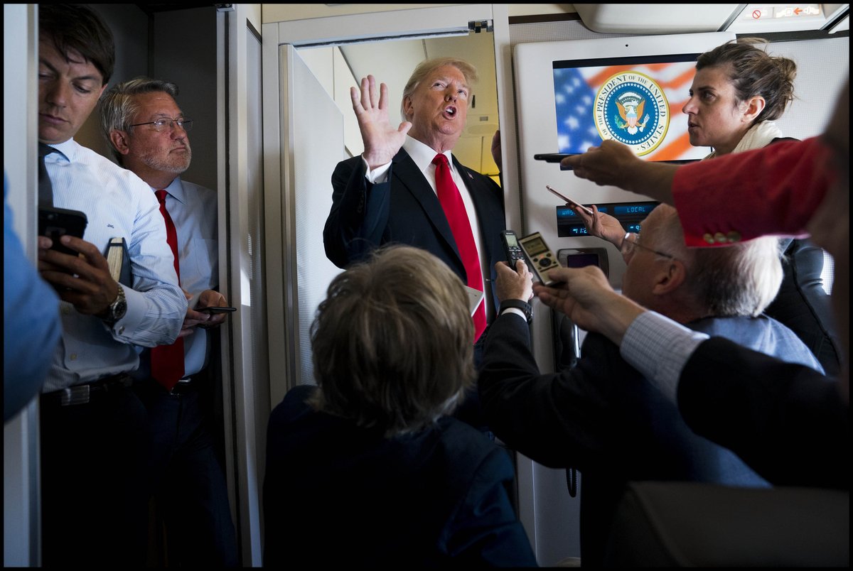 @realDonaldTrump speaks to reporters aboard Air Force One as he flew to Fargo, ND.pic.twitter.com/h6nfVasxcV