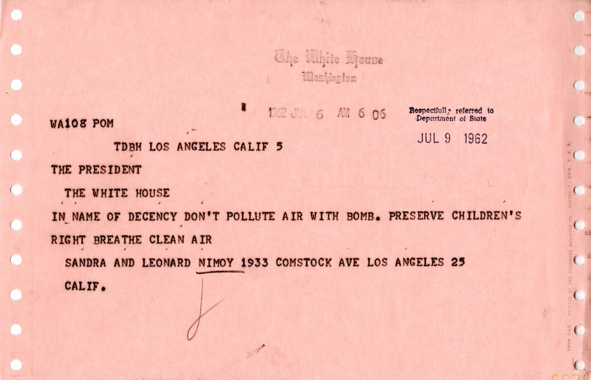 Happy 52nd anniversary, Star Trek! Leonard Nimoy wrote to JFK in 1962 asking for a safer planet.