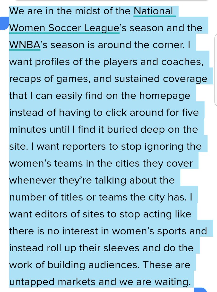 Key words here: "easily find." Sports media/editors need to make it possible for people to become CASUAL fans of women's sports.https://twitter.com/_shireenahmed_/status/981177969044422657 …