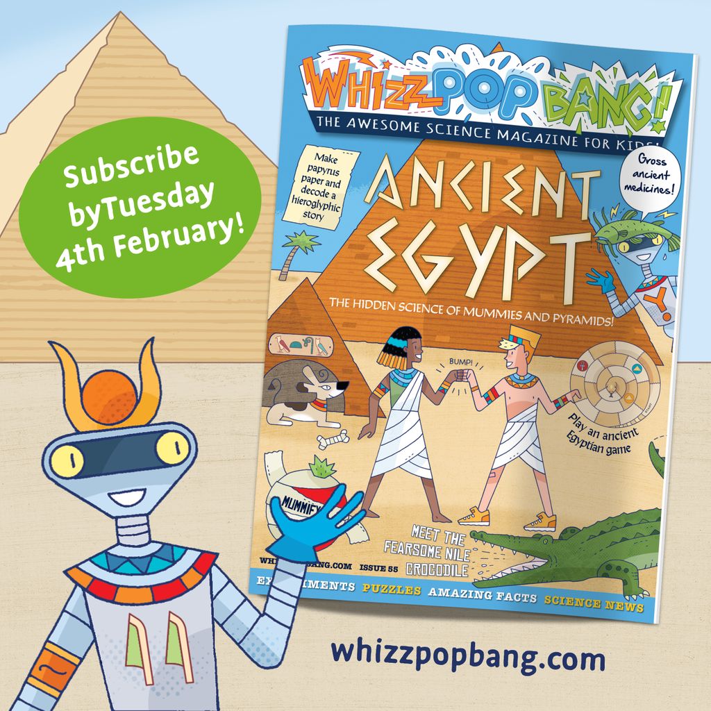 Can you believe it's almost time for another issue of Whizz Pop Bang magazine? This time, we're investigating the science of ancient Egypt. Here's a handy list of the extra bits you need to complete the experiments and activities in this issue!