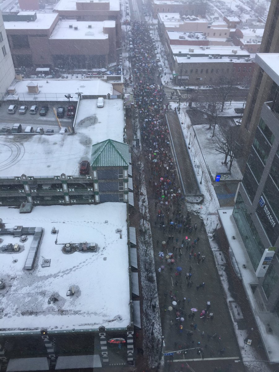 Robert A. Faucher shared photos #boise #marchers #downtown at #WomensMarchIdaho taken from offices of Holland & Hart .pic.twitter.com/DrmSYBkPpe