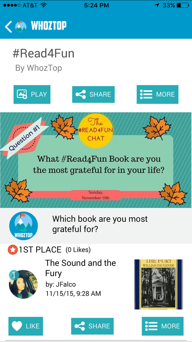 @WhozTop app for#Read4Fun "Which book are you most grateful for?" add yours in the app 4 a listpic.twitter.com/4SL7OrTkz7