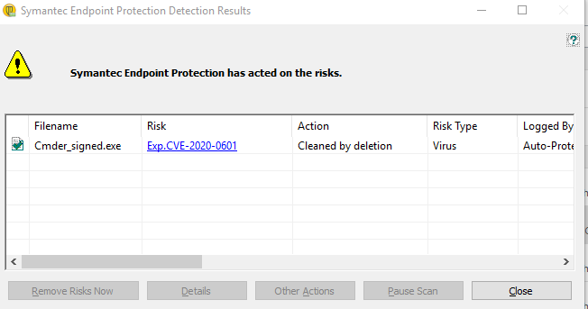 @McAfee for being so quick out of the gateway with CVE-2020-0601 detection on spoofed code signing:pic.twitter.com/iMrA0PQcbO