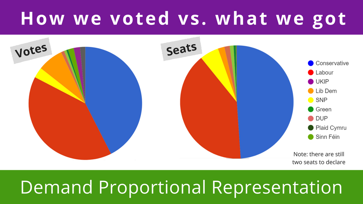 Even with mass tactical voting in support of the two biggest parties, our Parliament is again totally unrepresentative of votes cast.pic.twitter.com/RnIG8uSw14