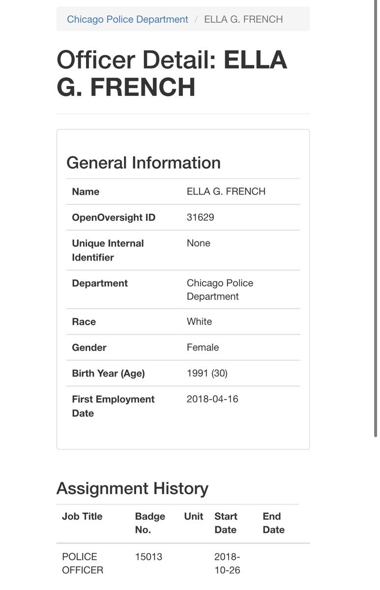 Devastating. Officer Ella French, the mother of a 2-month old baby who just came back to work from maternity leave, was executed in Chicago last night. A second Chicago officer is still hospitalized in critical condition, fighting for his life.pic.twitter.com/yWbuXDRXRz