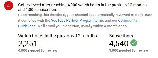 That's depressing, I wonder how many hours of watch time I will have by the time I can get monetised.