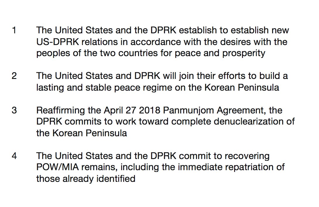 Channel NewsAsia complaining that they haven't gotten the text of the agreement between Trump and Kim from think tanks - new media already figured out what the four points of agreement were #SingaporeSummitpic.twitter.com/S8WybWmPqW