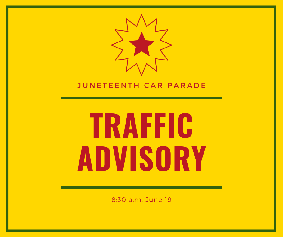 The Juneteenth car parade begins at 8:30 a.m. The route begins in Highland Park, continues onto Lafayette St and Richmond Road, and concludes at Bicentennial Park.pic.twitter.com/AlHD7Fa94K